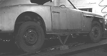 This too-clever-by-half jacking system had been added at some time in the car's working life. Sadly, as can be seen, it only lifts one wheel! |