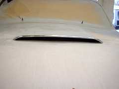 | Bonnet nearing readiness. The air-scoop still needs work | the bonnet scoop, surprisingly, is mounted almost directly over the radiator. | Air-scoop done. It seems to feed air behind the radiator and over the battery. |